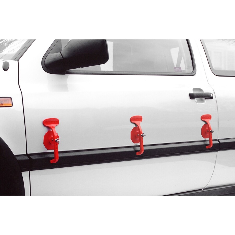 - Voor het vasthouden van gelijmde delen tijdens het drogen van de lijm Diverse toepassingen bij carrosseriewerk: - Voorruitsierlijsten - Logo's, belettering en emblemen - Binnenspiegels enz Optimale houding van de zuignap op de verniste plaat of op glas